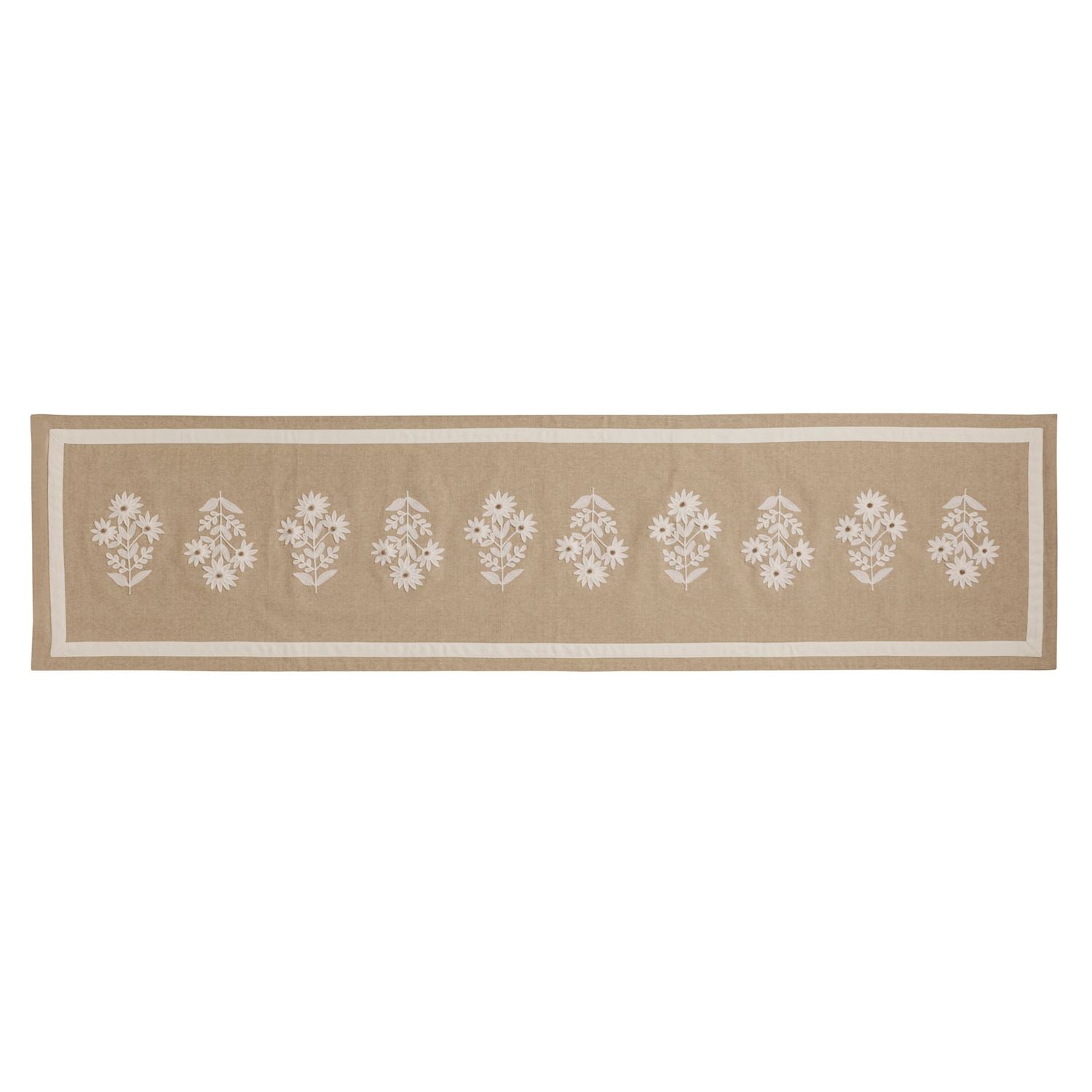 Elevate your table setting with this sophisticated chambray and cream cotton runner, where delicate French knot embroidery brings botanical elegance to your dining space. Each floral bundle is meticulously crafted, adding artisanal charm and refined texture to any décor. The natural fiber blend ensures durability while maintaining a soft, inviting aesthetic that complements both casual and formal occasions.