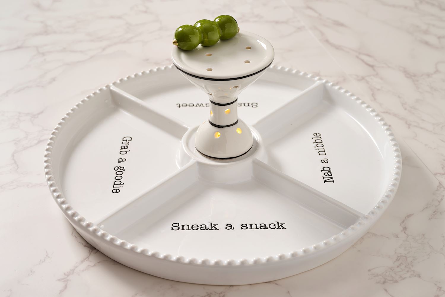 Hand-painted ceramic sitter with cut-out LED light-out detail and canvas accent tag. Battery included.