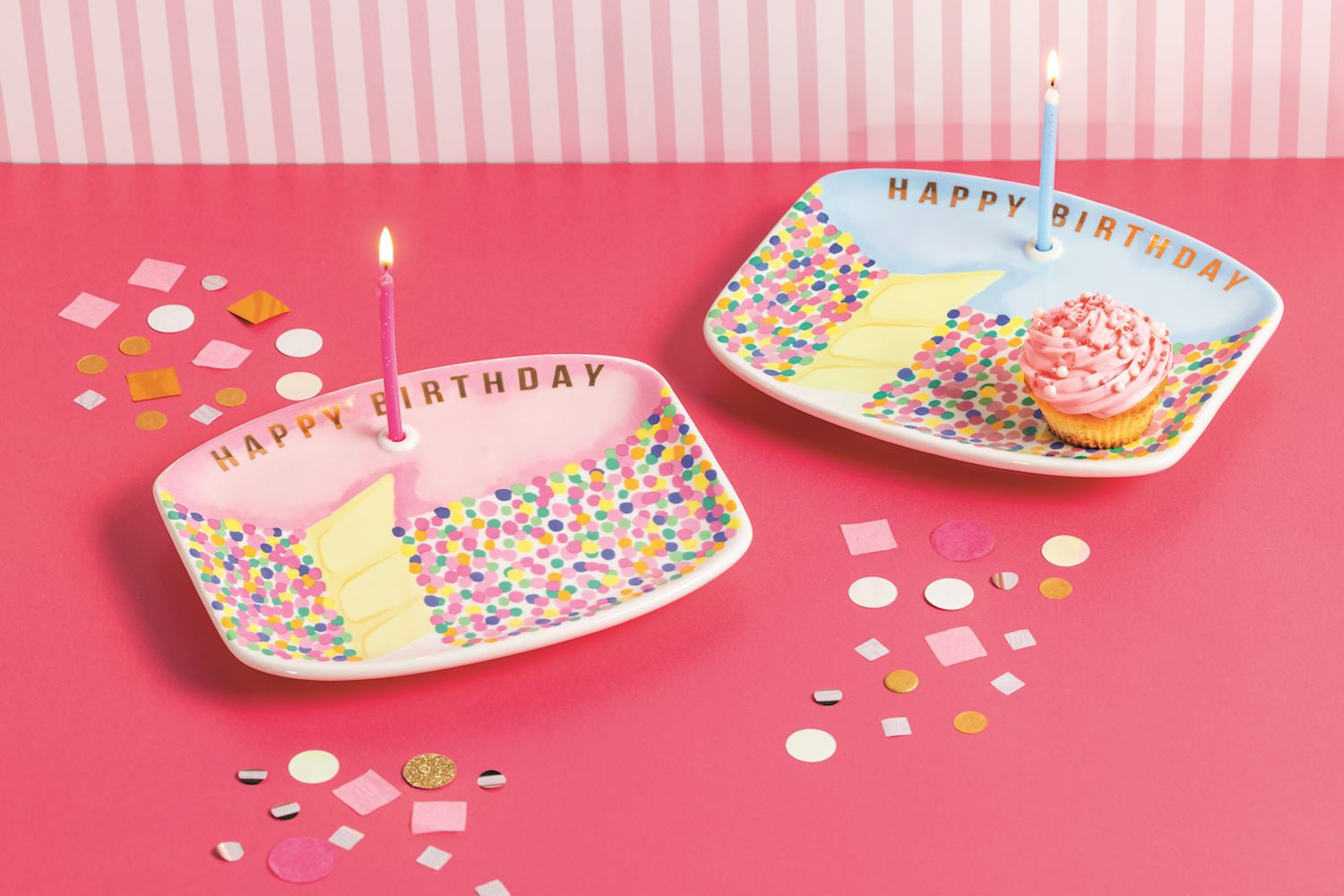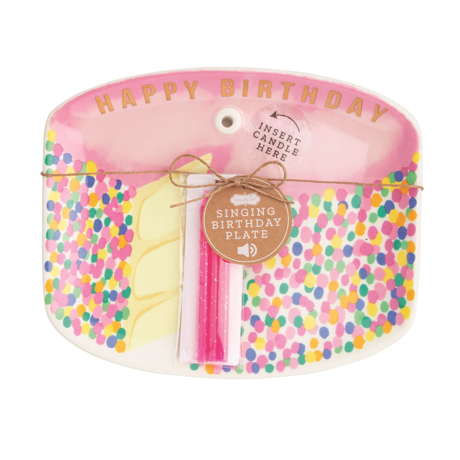 Celebrate in style with this delightful 2-piece musical birthday cake plate set. The ceramic plate features a convenient well designed to securely hold a standard birthday candle, while a built-in sound chip plays a cheerful "Happy Birthday" tune. Each set includes three colorful birthday candles and comes in your choice of blue or pink. Perfect for making birthday moments extra special and memorable for kids and adults alike.