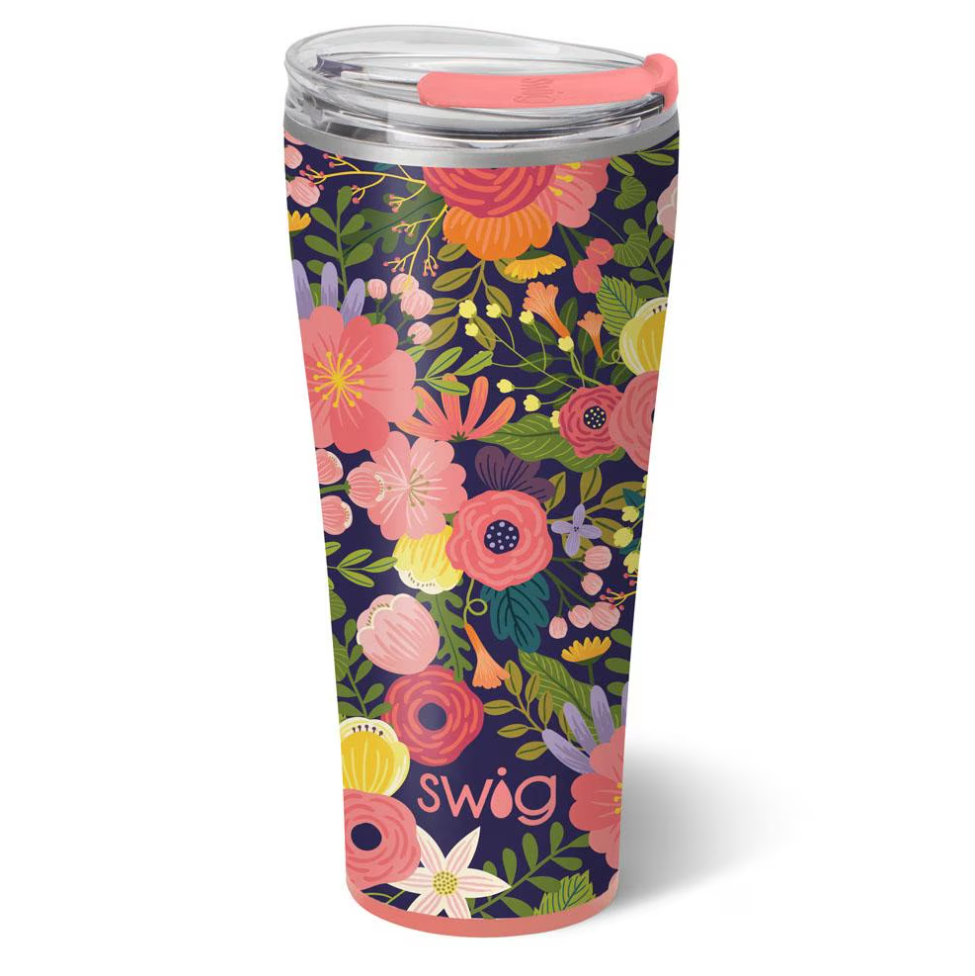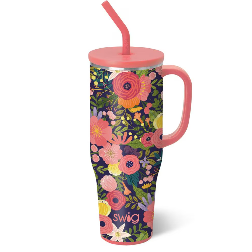 Embrace the warmth of the season with dusty coral and blush florals on a rich navy background.
