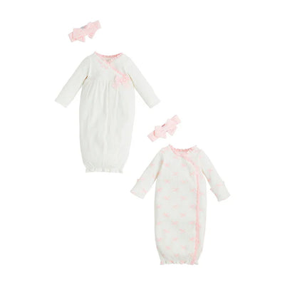 The Pink Bow Take-Me-Home Set is a charming 2-piece ensemble designed for your little one's comfort and style. This set includes a soft cotton rib sleep gown, featuring delicate ruffle details that add a touch of elegance. The gown is thoughtfully designed with built-in scratch protector hand mitts to keep your baby safe and cozy. Accompanying the gown is an adorable bow headband, completing the look with a sweet accessory. Perfectly sized for newborns, this set is crafted from a blend of 93% cotton and 7% spandex, ensuring a gentle stretch and a snug fit for your baby's delicate skin.