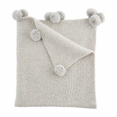 Our new chenille baby blanket is a cozy gift for sleepy baby. The ribbed chenille blanket features chenille pom-pom trim.