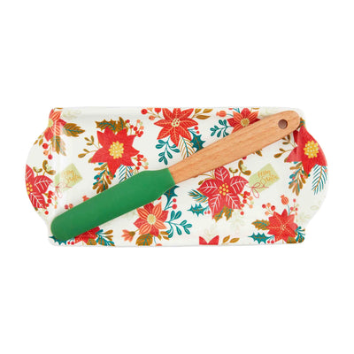 Spread the holiday cheer with our Christmas Everything Dish Set, comprising a patterned stoneware dish (9" x 4") and a 5 1/2" wood and silicone spreader. Enjoy the festive Christmas pattern while easily cleaning the ceramic dish in the dishwasher. Perfect for sending jolly Christmas wishes!