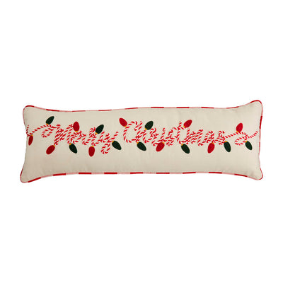 The Light-Up Christmas Lights Pillow is a beautifully designed long cotton pillow that will add a festive touch to your home decor. Made from high-quality cotton, this pillow features an appliqued design of Christmas lights that will instantly brighten up any room. But what sets this pillow apart is its LED light-up detail. With just a simple push of a button, the Christmas lights on the pillow will illuminate, creating a magical and enchanting ambiance. Whether you're cuddling up on the couch or decorating your bed, this pillow will bring a warm and cozy glow to your space. The pillow also includes accent piping, adding a touch of elegance and sophistication to its overall design. The piping not only enhances the pillow's aesthetic appeal but also provides durability, ensuring that it will last for many holiday seasons to come. Additionally, the pillow features a convenient zipper closure, allowing for easy removal of the cover for cleaning or storage. This makes it a practical and versatile addition to your holiday decor. Measuring 11" x 35", this pillow is the perfect size to be placed on a sofa, bed, or even as a decorative accent on a chair. Its long shape adds a unique and eye-catching element to your decor, making it a standout piece in any room. Whether you're looking to add a festive touch to your living room, bedroom, or any other space in your home, the Light-Up Christmas Lights Pillow is the perfect choice. Its combination of high-quality cotton, LED light-up detail, accent piping, and zipper closure make it a must-have item for the holiday season. Bring the joy and magic of Christmas into your home with this delightful pillow.