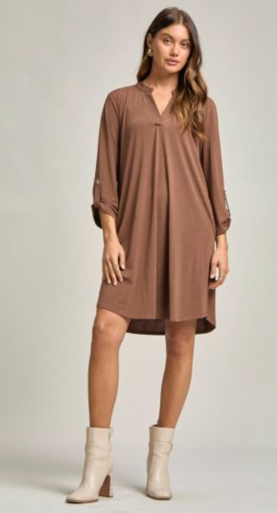 Wrinkle-free, travel friendly, Scarlett dress is back! We love our classic dress that is effortless and chic. This dress features a Lizzy neck with an A line silhouette.