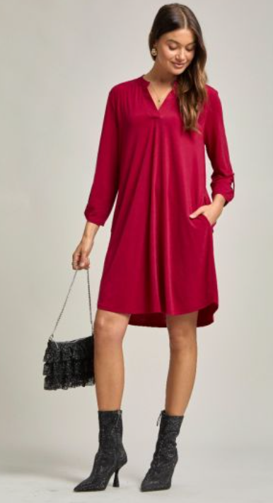 Wrinkle-free, travel friendly, Scarlett dress is back! We love our classic dress that is effortless and chic. This dress features a Lizzy neck with an A line silhouette.