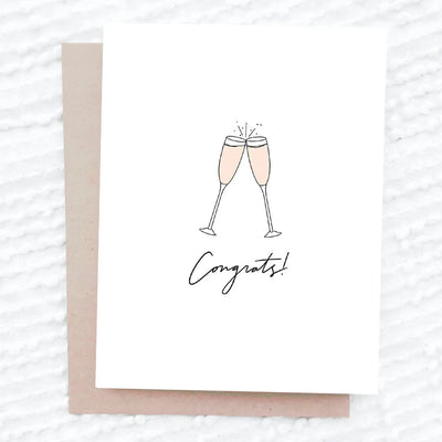 Cheers to the happy occasion with our Congrats! card. Raise a glass with a playful champagne toast design on white card. Perfect for any recipient, this blank inside card is sure to bring a smile. Congrats, you're the toast of the town!