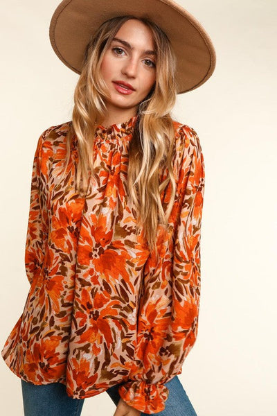 Look fresh-picked and fashionable in this Cora Floral Woven Top! This statement piece features a frilled mock neck with a button closure and a beautiful water color floral print. The bubble long sleeves are finished with ruffle hems to complete the look. Get ready to bloom!