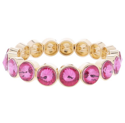Indulge in luxury with our Crystal Bezel Stretch Bracelet. Hand-crafted with exquisite jewel bracelets, this stunning piece is designed to add a touch of sophistication to any ensemble. Measuring at 7.5" around with a .5" pendant, this bracelet is the perfect blend of elegance and fashion. Elevate your style with our exclusive bracelet.