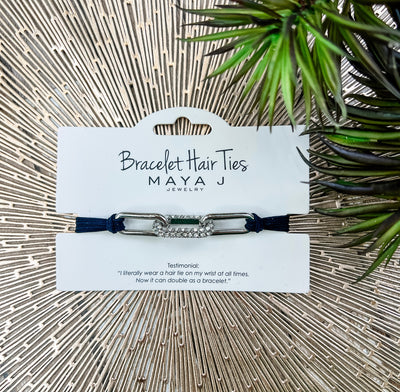 Never worry about losing your hair tie again with our Crystal Hair Tie! This functional and stylish hair accessory also doubles as a chic bracelet, making it easy to switch up your look on the go. Say goodbye to boring hair ties and hello to fashion and convenience!
