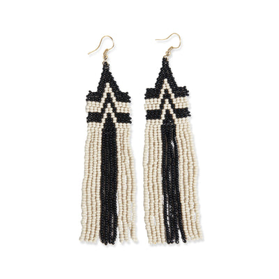 This pair of fringy geometric goodness was inspired by the peaks of mountain ranges at sunset. Tiered highs + lows are accentuated with modern color blocking created by the skilled hands of Artisan women in India. Each earring is a true work of art!
