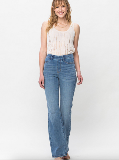 Our Dolly Cuffed Slim Fit Jeans feature a contemporary high waist, and a pull-on elastic waistband for a comfortable fit. Combining an elegant boot cut with a slim fit, these jeans are perfect for everyday wear.