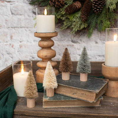Bring a touch of wilderness into your home decor with this set of four earth-tone bottlebrush trees. These miniature trees are crafted with sisal and stand approximately 4.5" tall, adding a rustic and warm touch to any room. With their subtle, organic tones, these trees bring the outdoors in, imbuing any space with a cozy and welcoming atmosphere.