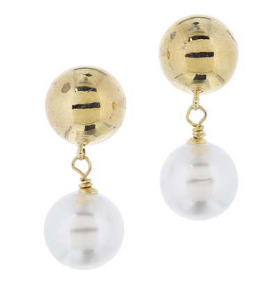 Elevate your look with the Ellie Dangle Earrings. These luxurious earrings feature a large gold ball and a sizable pearl dangle, measuring 1.5" top to bottom. Perfect for any occasion, these earrings exude sophistication and elegance.