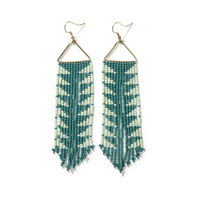 Part of our signature seed bead collection, these amazing fringe earrings offer a unique look as they hang from a brass triangle at the top.