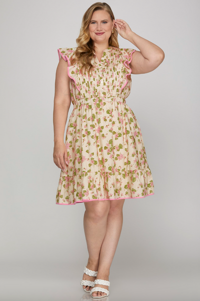 Upgrade your wardrobe with the Eva Flutter Sleeve Woven Dress. This stylish dress features flutter sleeves and a vibrant floral pattern, perfect for any occasion. The knee-length cut and elastic waist ensure a flattering fit, while pockets and piping add functionality and style to this must-have piece.