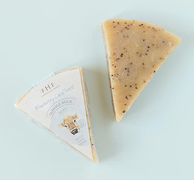 This rich soap if full of goodness inside! Whole milk contains buttery fats and vitamins A and B12 – all of which help hydrate and nourish skin. A blend of coconut, rice bran and olive oils provide a rich, lathering emolliency that leaves skin feeling soft and not stripped.