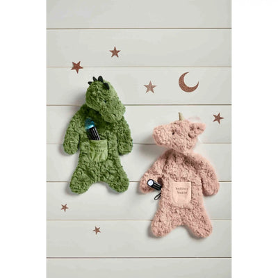This Dino Flashlight Cuddler Set is the perfect bedtime buddy. The two piece set comes with a faux fur plush cuddler. The cuddler features a flat minky pocket to hold included flashlight. Batteries are included for the flashlight. The jumbo bedtime buddy comes with a flashlight in pocket.