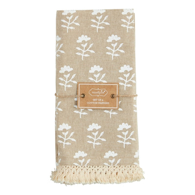 Elevate your dining experience with this exquisite set of four block print cotton napkins, each meticulously crafted to add a touch of elegance to your table setting. Measuring 18" x 18", these napkins are made from 100% high-quality cotton, ensuring a soft and durable texture that is perfect for everyday use or special occasions. The intricate block print design showcases a blend of traditional craftsmanship and contemporary style, making them a versatile addition to any decor. Finished with a charming fringe trim hem, these napkins not only enhance the aesthetic appeal of your dining area but also provide a practical solution for keeping your space tidy and stylish. Whether you're hosting a dinner party or enjoying a casual meal with family, these napkins offer both functionality and a sophisticated flair.