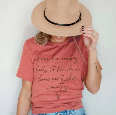 Whether you're working on the ranch, dancing at your favorite country spot, or simply expressing your inner cowgirl, this tee is a perfect addition to your wardrobe. Slip it on, pair it with your favorite boots, and let the "From Her Cowboy Boots Tee" be your partner in every Western escapade.