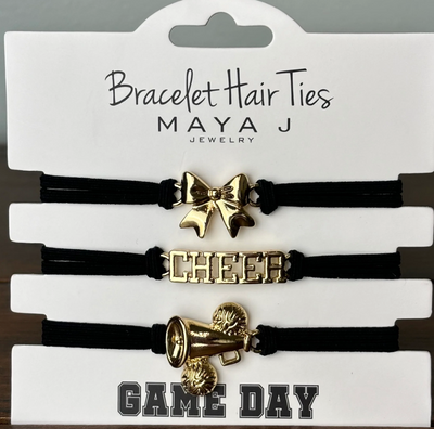 Score style points on game day with our versatile Hair Tie Bracelets! These clever accessories conveniently transition from wrist to ponytail, perfect for all your game day needs. Choose from four sporty options: Football, Cheer, Basketball, and Baseball. Don't choose between fashion and function, get both with our Game Day Bracelet Hair Ties!