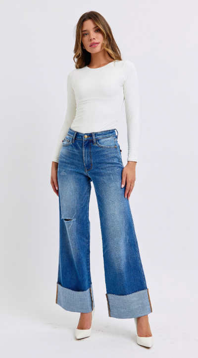 Unleash your retro style with the Seraphina Wide Leg With Cuff. Made with a mix of cotton, poly, rayon, and spandex, these pants provide comfortable stretch and durability. Featuring a trendy wide leg and bold cuff, these pants are perfect for adding a playful touch to any outfit.