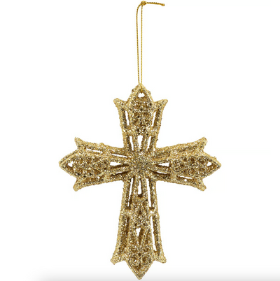 A decorative ornament from our Christmas Collection displaying a vintage cross design with glitter finish for added interest. Our Glitter Cross ornament is easy to hang for display via attached string hanger. A vintage Christmas home accent perfect for a Christmas tree or for seasonal decorating.