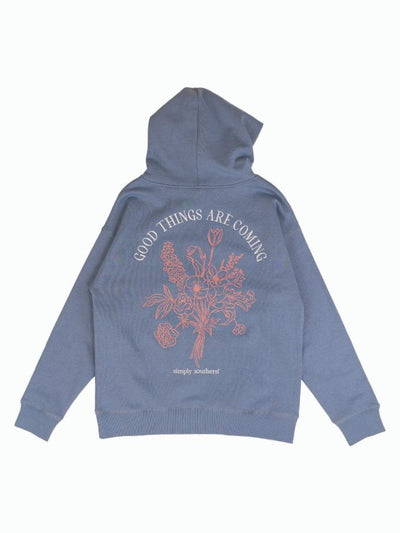 Introducing the Good Things Are Coming Embroidered Sweatshirt, a must-have for those looking to add a touch of style and personality! This embroidered hoodie boasts a front chest and full back embroidery, along with rib cuff and hem details. Complete with a hood and drawcord for ultimate comfort. Achieve a unique and trendy look with this one-of-a-kind sweatshirt.