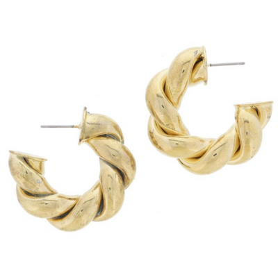 Unleash your inner hoops diva with Hadley Twisted Hoops. These thick gold twist earrings will elevate any outfit, adding a touch of sophistication and playfulness. With a size of 1.35", they're perfect for both everyday wear and special occasions. (Dare to twist up your style!)