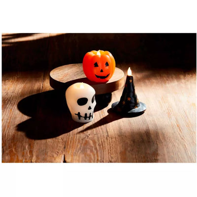 Get in the spooky spirit with these hand-painted wax candles! Featuring a faux plastic LED flame and a battery included, these flameless candles are perfect for adding a creepy touch to your Halloween decor. Say goodbye to the mess and hazards of traditional candles.