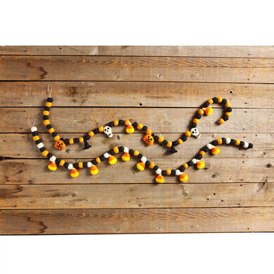 Upgrade your Halloween decor with our Halloween Garland, a delightful treat without any tricks. Crafted from embroidered felt wool cord, this garland is a must-have decorative piece for your mantel. The garland pom pieces measure approximately 1" in diameter, while the other pieces boast dimensions of approximately 1 1/2" x 2". Made from 100% wool, this garland exudes quality and durability. The filling consists of 100% polyester, ensuring a plush and cozy feel. For maintenance, spot cleaning is recommended. With its festive orange and black coloring, this garland adds a vibrant touch to your Halloween festivities.