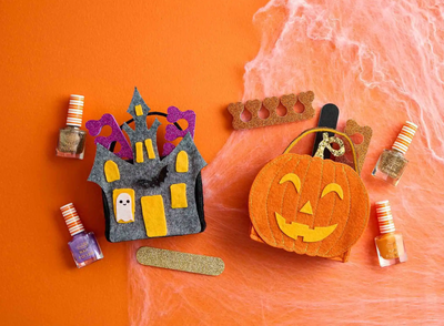 Introducing our Halloween House/Jack-O-Lantern Nail Polish Sets for the spookiest season! These hauntingly beautiful sets include five nail polish colors, all packaged in a convenient felt carrier tote. Each set contains two bottles of water-based nail polish, ensuring safe and easy application. To enhance your Halloween manicure experience, we've included a pair of toe separators and a nail file. Crafted with care, these sets are made from 100% polyester for durability and longevity. For maintenance, simply spot clean the set with a damp cloth. Treat yourself or your little ones to the perfect Halloween treat with these enchanting nail polish sets!
