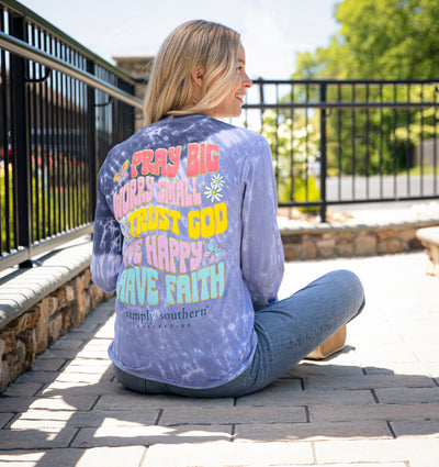 - Back Graphic: Screen printed letters that read: “Pray big, worry small, trust God, live happy, have faith