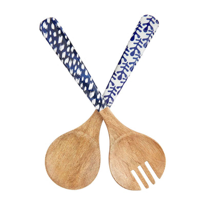 We might be bias, but we love our Indigo Enamel Server Set. The two piece set comes with two serving utensils. Each utensil is made of mango wood with a patterned enamel handle. The enamel features detailed blue and white patterns. The set includes one spoon and one fork.