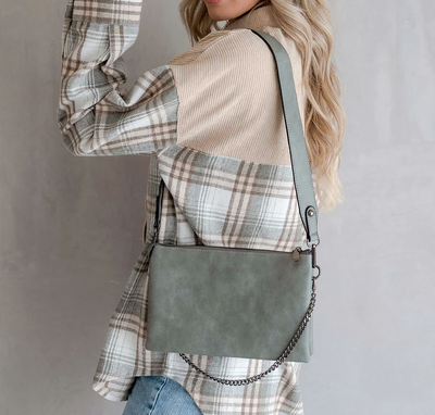 The big sister to our Riley, Izzy has many of the same great features with more space. She has the same two major compartments, a middle zip compartment, and inner cardholders. Izzy also comes with a wristlet strap and a fashionable guitar strap!