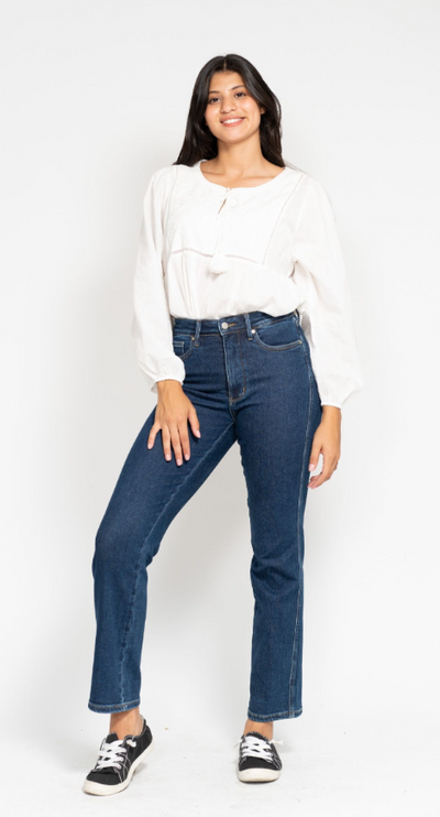 Say goodbye to muffin tops and hello to a smooth, streamlined silhouette with our Jessica Tummy Control Classic Jean. The high waist design cinches your waist while the straight leg cut elongates your legs. Rock your curves in confidence (and comfort) all day long.