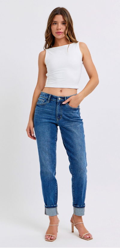 Introducing Julia, the perfect blend of vintage and modern style. The boyfriend fit exudes effortless coolness and the cuffed hem adds a touch of chic. Made with a soft blend of cotton, polyester, and spandex, these jeans offer both comfort and durability. Upgrade your wardrobe with Julia!