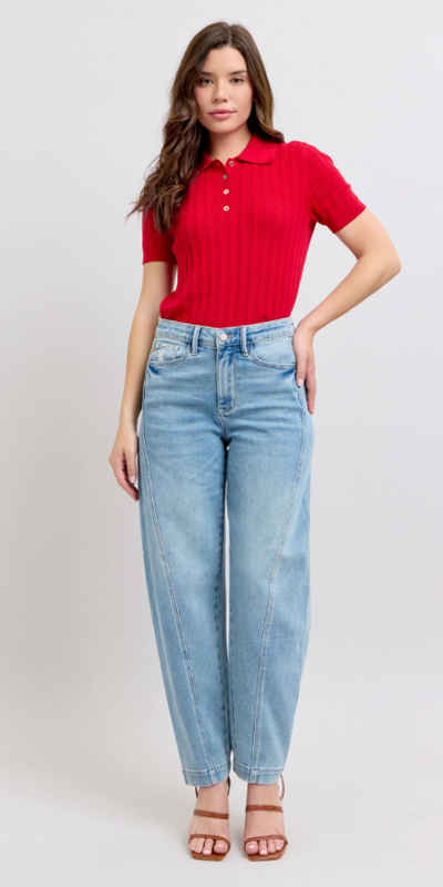 Step into style with the Lainey High Waist Barrel Leg Jean! With a flattering high waist and a unique barrel leg featuring a side panel, these jeans will elevate any look. Plus, the 11" front rise and 29" inseam provide the perfect fit for all-day comfort. Time to barrel on with style!