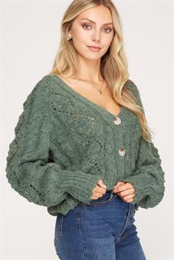 Stay warm and stylish in the Lavinia Button Down Cardigan. This stylish cardigan features a classic cable knit design, a long sleeve silhouette, and a V-neckline. Perfect for any day, this cozy piece will keep you looking and feeling great.