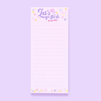 Take your lists and notes to the next level with Let's Go Girl Skinny List Pad! This ultra-slim note pad is perfect for everything from grocery lists to big ideas. With its bright colors and slim design, you can stay organized anywhere, anytime! Let's Go Girl!
