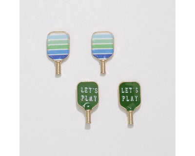 Add some fun to your everyday accessories with Let's Play Duo Earrings! These quirky earrings feature pickleball paddles in either green with cool tone stripes or hot pink with a floral pattern. Perfect for the sporty and playful fashionista. Serve up style with these unique earrings!
