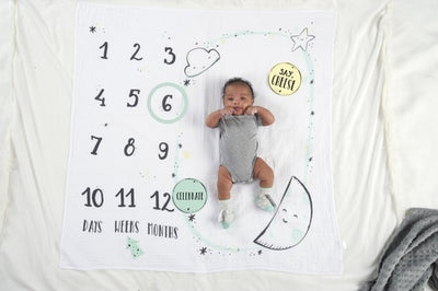 - Milestone blanket comes with 8 photo prop milestone cards, one message arrow marker and 2 round markers