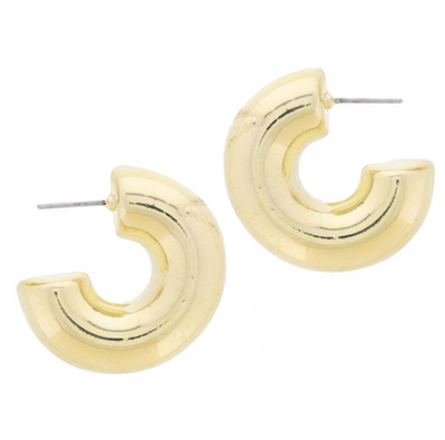 Complete your elegant look with the Lucia Hoop Earrings. Crafted with medium thick gold tubing, these 1.15" hoop earrings add sophistication to any outfit. Elevate your style with this exclusive and timeless piece, perfect for the modern and refined woman.