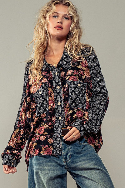 Unleash your inner flower child in the Megan Floral Shirt. This cropped top features a playful all over floral print and a raw hem for a touch of edge. Perfect for any casual occasion, this shirt will have you blooming with confidence.