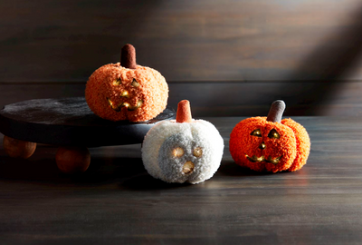 Get into the Halloween spirit with our Mini Shearling Pumpkins! These adorable shearling jack-o-lanterns feature LED light-up facial features, making them perfect for adding a cozy yet spooky touch to any room. Battery included. Choose from 3 styles.