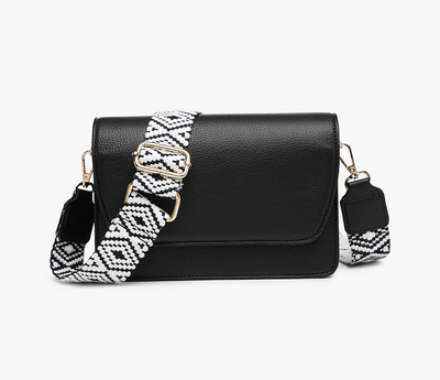 Noah may look simple, but its unique guitar strap really makes it pop! This flapover crossbody features three compartments, including two zippered areas and card slots, and snaps closed for extra security.