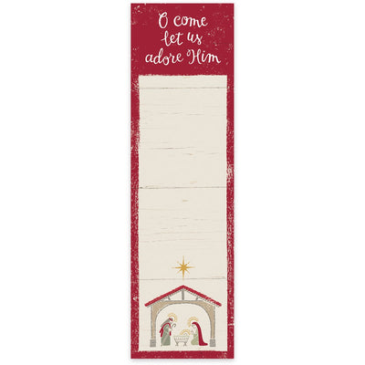 A fresh update for Christmas, a magnetic paper list notepad featuring an "O Come Let Us Adore Him" sentiment with bottom nativity scene design.