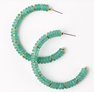 These Olivia Earrings are the perfect blend of fun and sophistication. Featuring 2" beaded acrylic hoops with gold disc accents, they add a touch of playful elegance to any outfit. Step up your earring game with these quirky and stylish hoops. (Get ready for compliments!)
