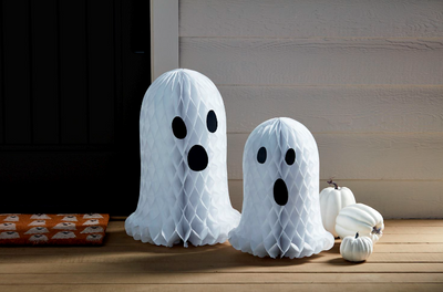Spooky and stylish, these Paper Ghost Sitters will add a boo-tiful touch to your Halloween décor. Made with honeycomb tissue paper, these decorative ghosts come in two sizes for maximum versatility. Perfect for a ghostly gathering or adding a playful touch to any room.