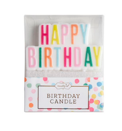 Hand-painted or foiled wax birthday candle on plastic stakes.
